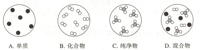 3.B【详解】单质是由一种元素组成的纯净物,化合物是由多种元素组成的纯净物,图示只含有一种元素,属于单质;由一种物质组成属于纯净物;由两种或两种以上物质组成,属于混合物。
