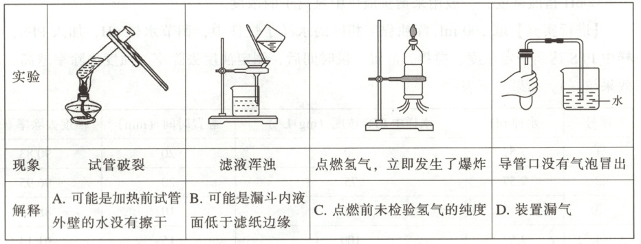 1.B【详解】漏斗内液面低于滤纸边缘,是正确的操作,不会导致滤液仍然浑浊。