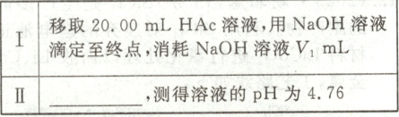 (5)向20.00mL的HAc溶液中加入V₁mLNaOH溶液达到滴定终点,滴定终点的溶液中溶质为NaAc,当$\frac{n(NaAc)}{n(HAc)}$=1时,溶液中c(H⁺)的值等于HAc的Kₐ,因此可再向溶液中加入20.00mLHAc溶液,使溶液中n(NaAc)=n(HAc)。