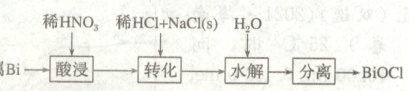 B.转化工序中加入稀$HCl$可抑制生成${BiONO_{3}}$
