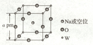 1.(2025·黑吉辽蒙卷,3分)$\mathrm{Na_xWO_3}$晶体因$x$变化形成空位而导致颜色各异,当$0.44\leq x\leq0.95$时,其立方晶胞结构如图。设$N_\mathrm{A}$为阿伏加德罗常数的值,下列说法错误的是(