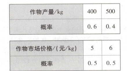 (1) 设A表示事件“作物产量为400kg”, B表示事件“作物市场价格为5元/kg”,