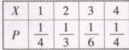 由分布列得$E(X)=1 × \frac{1}{4} + 2 × \frac{1}{3} + 3 × \frac{1}{6} + 4 × \frac{1}{4} = \frac{29}{12}$,