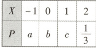(2)由题意,得a+b+c+$\frac{1}{3}$=1,所以a+b+c=$\frac{2}{3}$①,因为E(X)=(−1)×a+0×b+1xc+2×$\frac{1}{3}$=$\frac{3}{4}$,