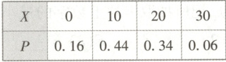 所以E(X)=0×0.16+10×0.44+20×0.34+30×0.06=13.