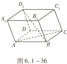 例24 (2025·四川省绵阳南山中学月考)如图6.1-36所示,已知在平行六面体$ABCD-A_1B_1C_1D_1$中,底面ABCD是边长为a的正方形,侧棱$AA_1$的长为b,且$\angle A_1AB=\angle A_1AD=120°$.求异面直线$BD_1$与AC所成角的余弦值.