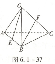 (2025·江西省上饶市质检)如图6.1-37,在正四面体OABC中,E,F分别为AB,OC的中点,则$\overrightarrow{OE}$与$\overrightarrow{BF}$的夹角的余弦值为.