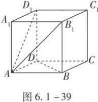 例25 (2024·上海改编)如图6.1-39,已知四棱柱$ABCD-A_1B_1C_1D_1$,底面ABCD为平行四边形,$AA_1=3$,BD=4,且$\overrightarrow{AB_1}·\overrightarrow{BC}-\overrightarrow{AD_1}·\overrightarrow{DC}=5$,则异面直线$AA_1$与BD夹角的余弦值为.