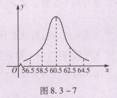 ·例1-4 为了解山东省高中男生的身体发育状况,随机抽取1000名男生测量他们的体重,测量的结果表明他们的体重$X$(单位:$kg$)服从正态分布$N(\mu,2^2)$,正态密度曲线如图8.3 - 7所示.若体重落在区间$[58.5,62.5]$内属于正常情况,则在这1000名男生中不属于正常情况的人数约是()