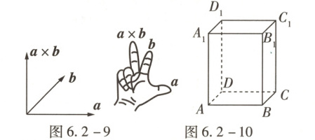 例17 新定义 向量的叉乘 [多选题] (2025·北京市清华大学附属中学期中)向量的运算包含点乘和叉乘,其中点乘就是大家熟悉的向量的数量积. 现定义向量的叉乘:给定两个不共线的空间向量$\boldsymbol{a}$与$\boldsymbol{b},$规定①$\boldsymbol{a}×\boldsymbol{b}$为同时与$\boldsymbol{a},\boldsymbol{b}$垂直的向量;②$\boldsymbol{a},\boldsymbol{b},\boldsymbol{a}×\boldsymbol{b}$三个向量构成右手系(如图 6.2 -9);③$|\boldsymbol{a}×\boldsymbol{b}|=$$|\boldsymbol{a}||\boldsymbol{b}|· sin\langle \boldsymbol{a},\boldsymbol{b}\rangle $;④若$\boldsymbol{a}=(x_{1},y_{1},z_{1}),\boldsymbol{b}=(x_{2},y_{2},$$z_{2})$,则$\boldsymbol{a}×\boldsymbol{b}=(+$$\begin{vmatrix} y_{1}&z_{1}\\ y_{2}&z_{2}\end{vmatrix} ,-$$\begin{vmatrix} x_{1}&z_{1}\\ x_{2}&z_{2}\end{vmatrix} ,+$$\begin{vmatrix} x_{1}&y_{1}\\ x_{2}&y_{2}\end{vmatrix} )$,其中$\begin{vmatrix} a&b\\ c&d\end{vmatrix} =ad-bc$. 如图 6.2 -10,在长方体$ABCD-A_{1}B_{1}C_{1}D_{1}$中,$AB=AD=2,AA_{1}=3,$则下列结论正确的是( )