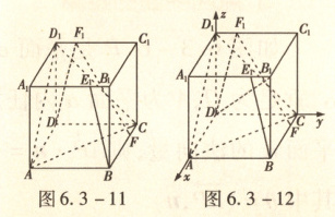 例4-7 [教材改编 P37 例8]如图6.3-11,在正方体$ABCD-A_{1}B_{1}C_{1}D_{1}$中,点$E_{1}$,$F_{1}$,$F$分别在$A_{1}B_{1}$,$C_{1}D_{1}$,$BC$上,且$E_{1}B_{1}=\dfrac{1}{4}A_{1}B_{1}$,$D_{1}F_{1}=\dfrac{1}{4}D_{1}C_{1}$,$CF=\dfrac{1}{4}CB$.