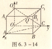 解析 建立如图6.3-14所示的空间直角坐标系,则$A(2,0,0)$,$C(0,3,0)$,$Q(0,\dfrac{3}{2},1)$,所以$\overrightarrow{AC}=(-2,3,0)$,$\overrightarrow{QC}=(0,\dfrac{3}{2},-1)$,