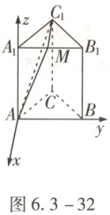 解析 ▶ 建立如图6.3-32所示的空间直角坐标系,([注意] 建系时要使用到 $A_1$ 的点尽可能多地在坐标轴上)