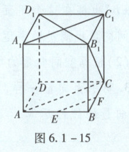 例4-8 在如图6.1-15所示的正方体$ABCD - A_1B_1C_1D_1$中,$E$,$F$分别为$AB$,$BC$的中点,求(1) $\langle \overrightarrow{AB}, \overrightarrow{EF} \rangle$; (2) $\langle \overrightarrow{B_1B}, \overrightarrow{EF} \rangle$; (3) $\langle \overrightarrow{C_1A_1}, \overrightarrow{EF} \rangle$; (4) $\langle \overrightarrow{B_1C}, \overrightarrow{EF} \rangle$; (5) $\langle \overrightarrow{D_1B_1}, \overrightarrow{EF} \rangle$; (6) $\langle \overrightarrow{AC}, \overrightarrow{CB_1} \rangle$.