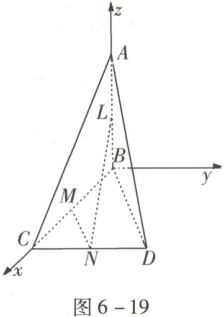 如图6-19.则$A(0,0,1)$,$B(0,0,0)$,$C(1,0,0)$,$D(1,1,0)$.