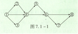 例2-2 如图7.1-1是某项工程的网络图,则从开始节点①到终止节点⑧的路径(单位:条)共有 ()
