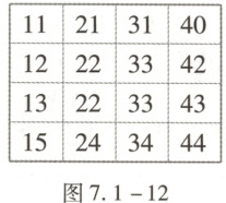 +例13 (2024·新课标Ⅱ卷)在如图7.1-12的4×4的方格表中选4个方格,要求每行和每列均恰有一个方格被选中,则共有种选法,在所有符合上述要求的选法中,选中方格中的4个数之和的最大值是.