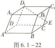 2. (2025·福建省莆田市第十五中学期中)如图6.1-22,在平行六面体(底面为平行四边形的四棱柱)$ABCD-A_1B_1C_1D_1$中,E为BC延长线上一点,$\overrightarrow{BC}=3\overrightarrow{CE}$,则$\overrightarrow{D_1E}=$(