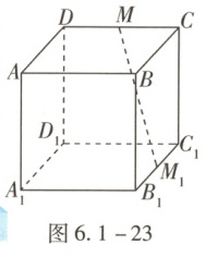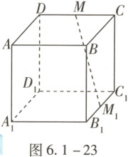 例16 如图6.1-23所示,正方体$ABCD-A_1B_1C_1D_1$的棱长为1,M,$M_1$分别是DC,$B_1C_1$的中点,求$\overrightarrow{MM_1}·\overrightarrow{AB}$.