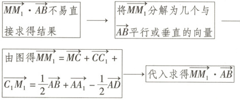 所以$\overrightarrow{MM_1}·\overrightarrow{AB}=\dfrac{1}{2}\overrightarrow{AB}^2+\overrightarrow{AA_1}·\overrightarrow{AB}-\dfrac{1}{2}\overrightarrow{AD}·\overrightarrow{AB}=\dfrac{1}{2}|\overrightarrow{AB}|^2=\dfrac{1}{2}$.