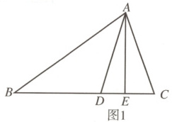 (1)如图1,AE是△ABC边BC上的高,∠B = 36°,∠C = 70°,求∠DAE的度数;