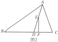 (2)如图2,点E在AD上,EF⊥BC于点F,猜想∠DEF与∠B,∠C的数量关系,并证明你的结论.