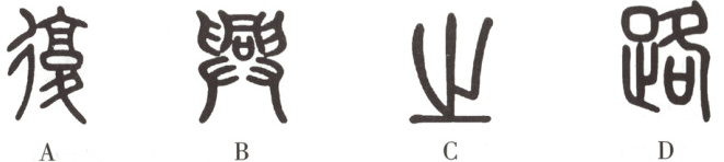 1.汉字是中华文明的标志,从公元前16世纪殷商后期被认为是汉字的第一种形式的甲骨文到今天,产生了金文、小篆、隶书、楷书、草书、行书等多种字体,每种字体都有着各自鲜明的艺术特征.下面的小篆体字是轴对称图形的是 ( )