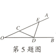 5.“三等分角”大约是在公元前五世纪由古希腊人提出来的.借助“三等分角仪”能三等分任一角.如图,这个三等分角仪由两根有槽的棒OA,OB组成,两根棒在点O相连并可绕O转动,点C固定,OC = CD = DE,点D,E可在槽中滑动,若∠BDE = 75°,则∠O的度数是