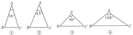 8.如图,下列四个三角形中,均有AB = AC,则经过三角形的一个顶点的一条直线能够将这个三角形分成两个小等腰三角形的是