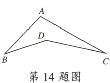 14.如图,∠BDC = 150°,∠B = $\frac{1}{3}$∠BDC,∠C = 28°,则∠A 的度数为