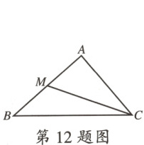 12.(驻马店月考)如图,CM 是△ABC 的中线,BC = 8 cm,若△BCM 的周长比△ACM 的周长大 3 cm,则 AC 的长为