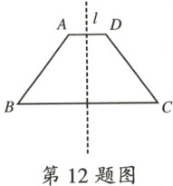 12.如图,在四边形 ABCD 中,$AD // BC$,直线 l 是它的对称轴,$∠B = 53^{\circ}$,则$∠D =$