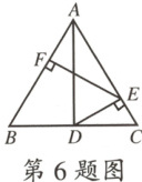 6.如图,在等边三角形 ABC 中,点 D 是 BC 的中点,$DE ⊥ AC$于点 E,$EF ⊥ AB$于点 F,已知$BC = 16$,则 BF 的长为 (