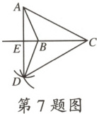 7.如图,在钝角三角形 ABC 中,∠ABC 为钝角,以点 B 为圆心,AB 长为半径画弧;再以点 C 为圆心,AC 长为半径画弧;两弧交于点 D,连接 AD,BD,CD,CB 的延长线交 AD 于点 E.下列结论错误的是 (