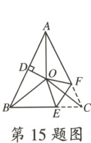 15.如图,在△ABC 中,$AB = AC$,$∠BAC = 48^{\circ}$,∠BAC 的平分线与线段 AB 的垂直平分线 OD 交于点 O.连接 OB,OC,将$∠ACB$沿 EF(点 E 在 BC 上,点 F 在 AC 上)折叠,点 C 与点 O 恰好重合,则$∠OEC =$