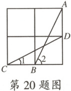 20.(邓州期中)如图,在$2×2$的正方形网格中,线段$AB$,$CD$的端点均在格点上,则$\angle1+\angle2=$