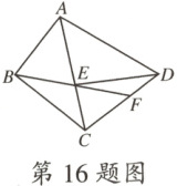 16.如图,在四边形$ABCD$中,$AC$平分$\angle BAD$,$AD=AC$,在$AC$上截取$AE=AB$,连接$DE$,$BE$,并延长$BE$交$CD$于点$F$.有以下结论:①$\triangle BAC\cong\triangle EAD$;②$\angle ABE+\angle ADE=\angle BCD$;③$BC+CF=DE+EF$.其中正确的个数是 (