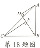 18.如图,在$\triangle ABC$中,$AB=CB$,$\angle ABC=90^{\circ}$,$AD\bot BD$于点$D$,$CE\bot BD$于点$E$.若$AD=5$,$CE=7$,则$DE$的长为