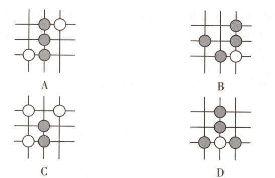 22.围棋起源于中国,古代称之为“弈”,至今已有四千多年的历史.下列由黑白棋子摆成的图案是轴对称图形的是 ( )