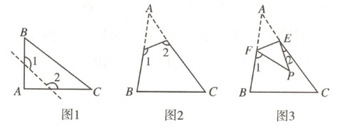 ;(4)若没有剪掉∠A,而是把它折成如图 3 所示的形状,试探究∠1 + ∠2 与∠A 的关系,并说明理由.