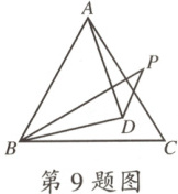 9.D 【解析】如图,连接CD,在△BCD和△ACD中,$\begin{cases} BD=AD,\\ CD=CD,\\ BC=AC,\end{cases}$