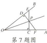 7.如图,$OP$平分$\angle AOB$,$PC\perp OA$于点$C$,$PD\perp OB$于点$D$,延长$CP$,$DP$分别交$OB$,$OA$于点$E$,$F$.下列结论错误的是 (