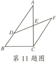 11.如图,在$\triangle ABC$中,点$D$是$AB$上一点,$CF// AB$,点$D$,$E$,$F$三点共线,请添加一个条件