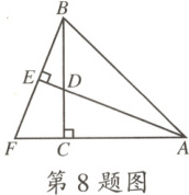 8.如图,$BC$,$AE$是锐角三角形$ABF$的高,相交于点$D$,若$AD=BF$,$AF=7$,$CF=2$,则$BD$的长为 (