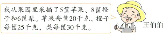答:王伯伯采摘的苹果和橙子一共300千克。