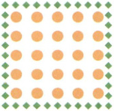 解析 如图,菊花有5行5列,共$5×5=25$(盆);绣球花可以看成4组,每组10盆,共$4×10=40$(盆),一共摆了$25+40=65$(盆)。