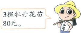 解析:根据题意,9÷3 = 3,9棵是3棵的3倍,所以9棵牡丹花苗的价格也是3棵牡丹花苗的3倍。那么一共要花3×80 = 240(元)。