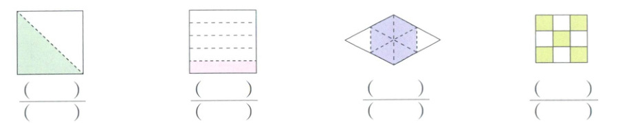 (2)把 10 块糖平均分给 5 个小朋友,每人分得这些糖的$\dfrac{(\quad)}{(\quad)}$,3 人分得这些糖的$\dfrac{(\quad)}{(\quad)}$。