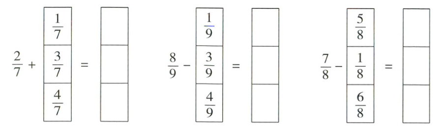 $\dfrac{(\quad)}{(\quad)}+\dfrac{(\quad)}{(\quad)}=\dfrac{(\quad)}{(\quad)}$