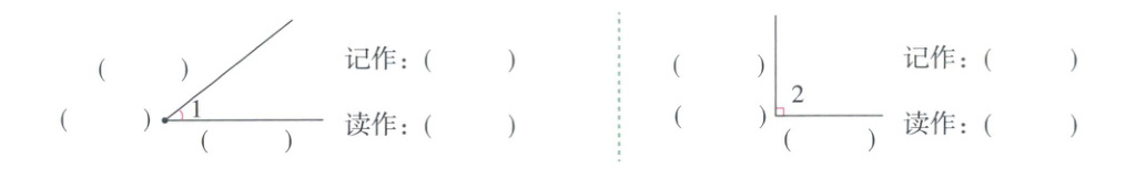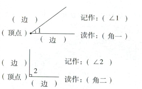 (1)先填出下面角各部分的名称,再写出角的名称并读一读。